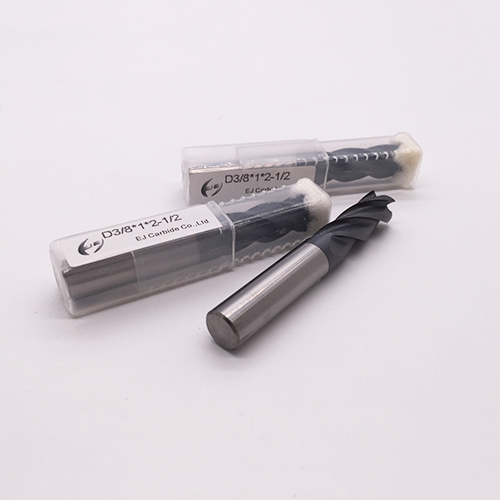 EJ Carbide 3/8 inch size 4 flute TiAIN coating carbide end mill use very fine ultrafine particles 0.3m/mCo12% tungsten carbide as raw material,With high heat resistance and high lubricity AITiN/TiAIN PVD coating,Especially for high-speed cutting, stainless steel, alloy steel, mold steel .